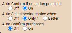 The gameplay of Space Base is pretty smooth in the BGA interface. There’s not so much going on with this game that I would consider the digital version a significant improvement over a physical copy experience. There are some nice optional settings to streamline things even further digitally. You can choose to have the game scripting auto-select the best result of a dice roll, which really speeds things along without having to inanely click to confirm results.