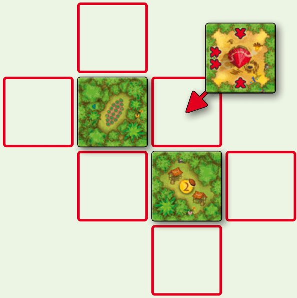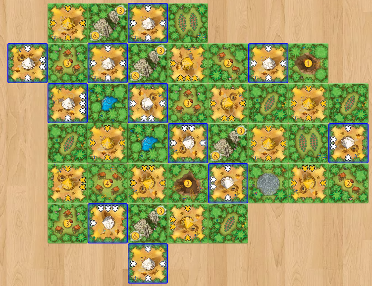 Jungle space to be bordered by two or more Worker tiles, that Jungle space must be filled. There is a pool of up to two Jungle tiles which can be chosen to fill the spot. The player chooses one and then if another Jungle space needs filled, the other (if available – these will run out) is used to fill that space.